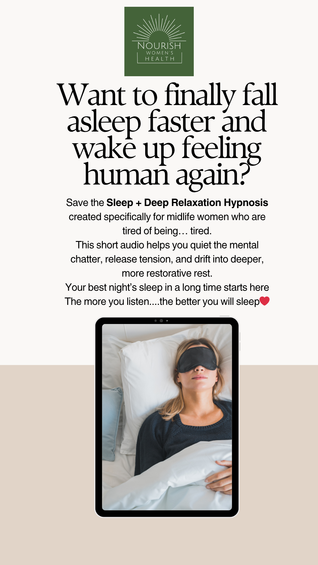 This short audio helps you quiet the mental chatter, release tension, and drift into deeper, more restorative rest.Your best night’s sleep in a long time starts hereThe more you listen....the better you will sleep❤️ Fill out this quick form to sleep better tonight! Want to finally fall asleep faster and wake up feeling human again?